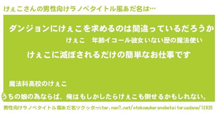 | ヒーロー風カッコイイあだ名 | 『幻影騎士ケェ』『ウルトラけぇこマン』 |