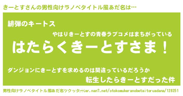 | ヒーロー風カッコイイあだ名 | 『ウルトラきーとすマン』『暗黒騎士キー』 |