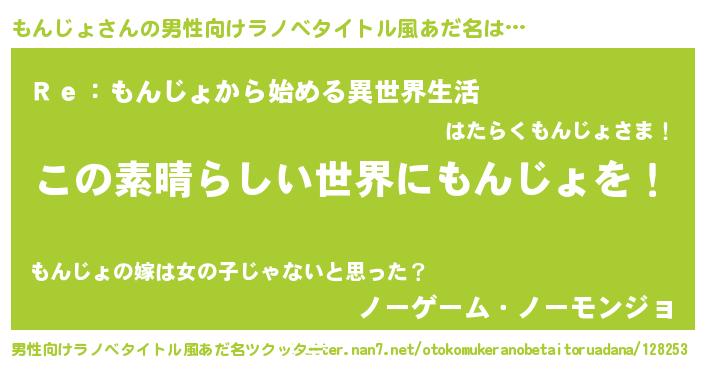 | 意味不明あだ名 | 『住所不定無職もんじょ(8歳)』 |