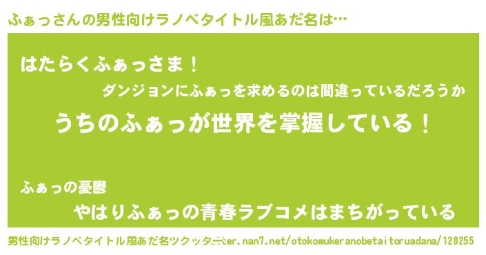 | 胡散臭い通販商品みたいなあだ名 | 『運命の人と巡り会える高級そうな絵画…その名も「ふぁっ」』 |
