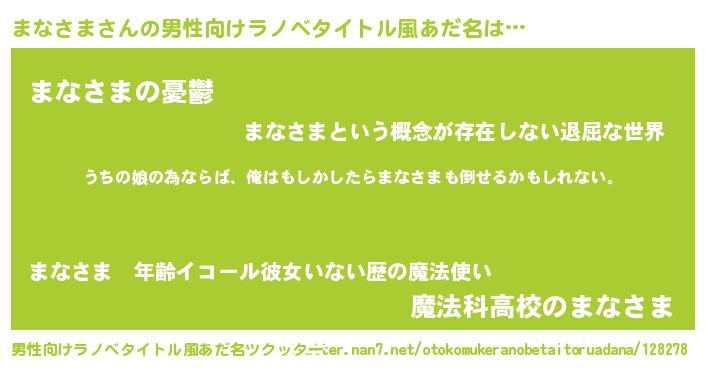 | ヒーロー風カッコイイあだ名 | 『ウルトラまなさまマン』『ネオマナサマ』 |