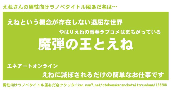 | 女子向けラノベタイトル風あだ名 | 『えねが死なない童話 林檎のえねの診療簿』 |