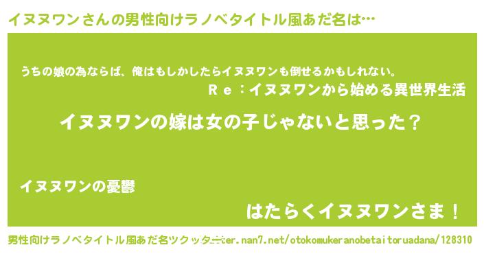 | 女子向けラノベタイトル風あだ名 | 『イヌヌワン様がみてる』 |