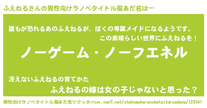 | 女子向けラノベタイトル風あだ名 | 『死神ふえねるの再婚』 |