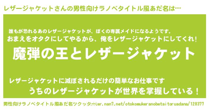 | ヒーロー風カッコイイあだ名 | 『仮面レザダー』『ネオレザージャケット』 |