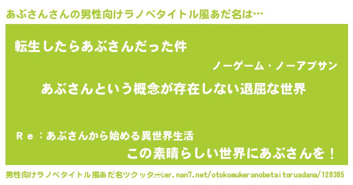 あぶさんさんの男性向けラノベタイトル風あだ名をツクッター!