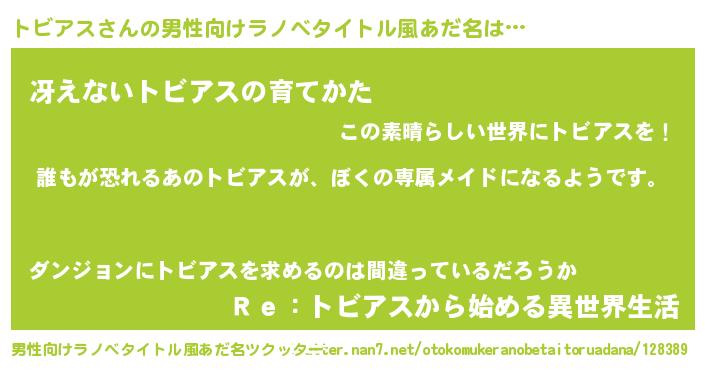 | 女子向けラノベタイトル風あだ名 | 『異世界でカフェトビアスを開店しました。』 |