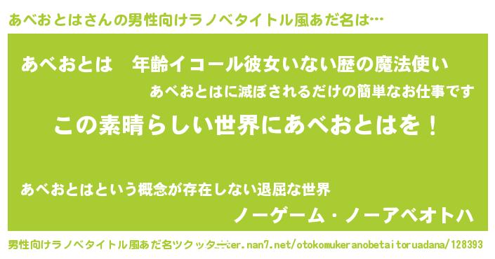 | 胡散臭い通販商品みたいなあだ名 | 『あなたにだけ特別に提供する100年もののヴィンテージワイン…その名も「あべおとは」』 |