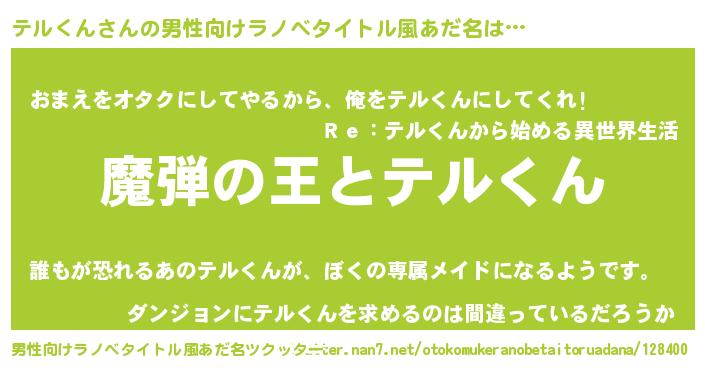 | 女子向けラノベタイトル風あだ名 | 『乙女ゲームの破滅フラグしかない悪役テルくんに転生してしまった…』 |