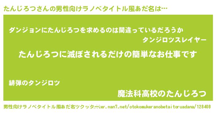 | 胡散臭い通販商品みたいなあだ名 | 『全米が絶賛したサプリメント…その名も「たんじろつ」』 |