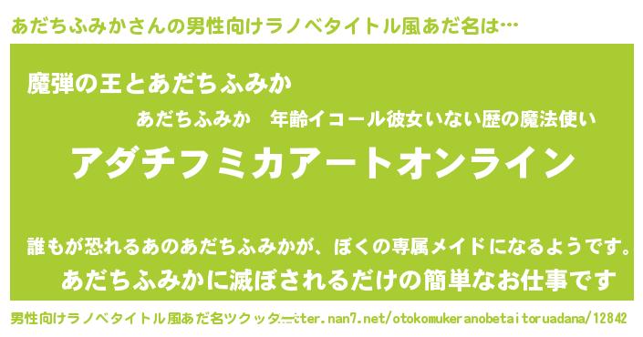 | 女子向けラノベタイトル風あだ名 | 『誰かこのあだちふみかを説明してください! ~契約から始まるウェディング~』 |