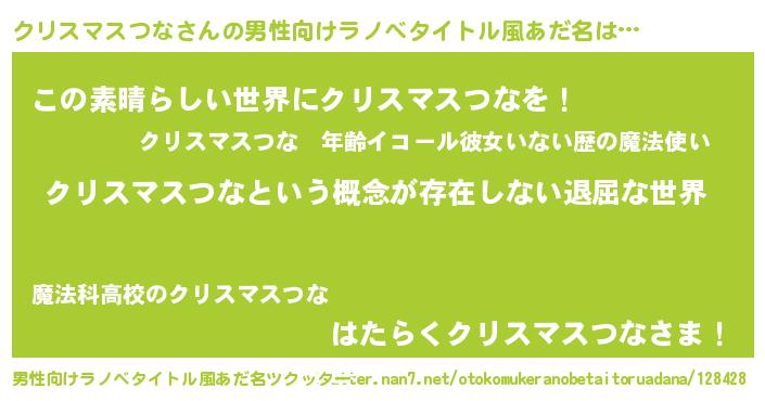 | 胡散臭い通販商品みたいなあだ名 | 『来世でも幸せになれる健康食品…その名も「クリスマスつな」』 |