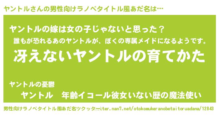 | 胡散臭い通販商品みたいなあだ名 | 『伝統あるサプリメント…その名も「ヤントル」』 |