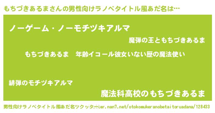| 女子向けラノベタイトル風あだ名 | 『もちづきあるまの玉の輿計画!』 |
