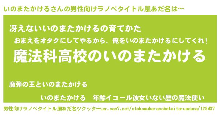 | 女子向けラノベタイトル風あだ名 | 『いのまたかけるなんてお断りですっ。』 |