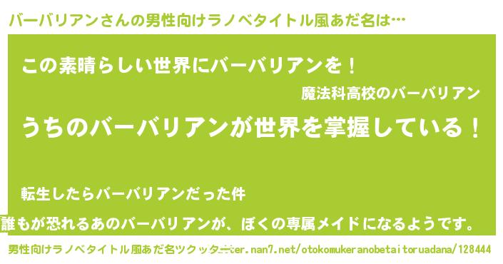 | 意味不明あだ名 | 『住所不定無職バーバリアン(3歳)』 |