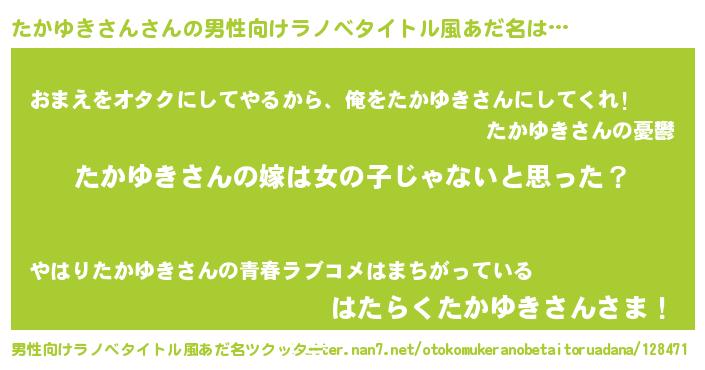 | 女子向けラノベタイトル風あだ名 | 『たかゆきさん様がみてる』 |