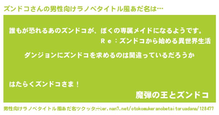 | 女子向けラノベタイトル風あだ名 | 『ズンドコは平凡を望む』『闇のズンドコ』 |