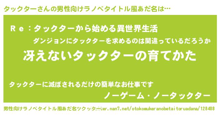 | 意味不明あだ名 | 『自称タックター』『ペロリンタックター』 |