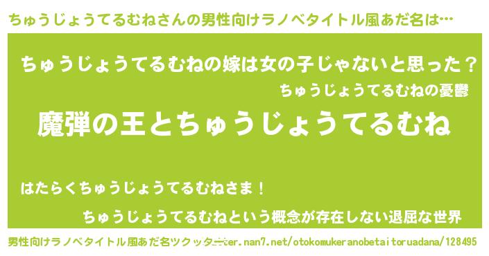 | 女子向けラノベタイトル風あだ名 | 『乙女ゲームの破滅フラグしかない悪役ちゅうじょうてるむねに転生してしまった…』 |