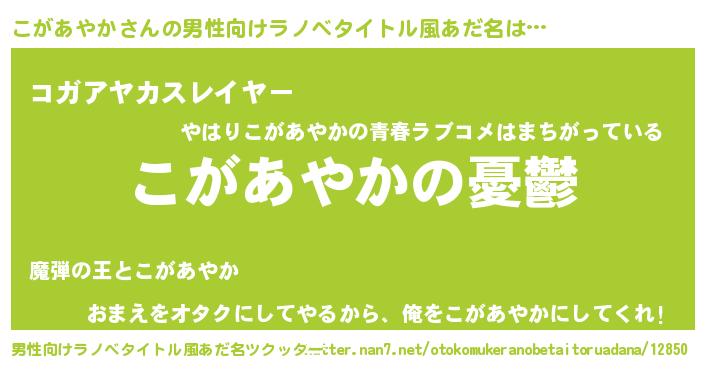 | 胡散臭い通販商品みたいなあだ名 | 『必ず成功する水晶球…その名も「こがあやか」』 |