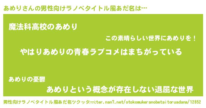 | ヘコむあだ名 | 『豆乳』『あめり(爆)』『あめもー』 |