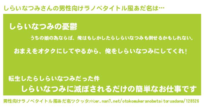 | 女子向けラノベタイトル風あだ名 | 『しらいなつみ夫妻のなれそめ』 |