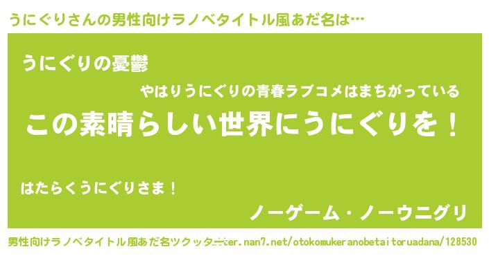 | 意味不明あだ名 | 『住所不定無職うにぐり(4歳)』 |