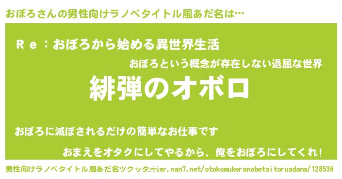 | ヒーロー風カッコイイあだ名 | 『超時空戦士オボロ』『友情の使者おぼろ』 |