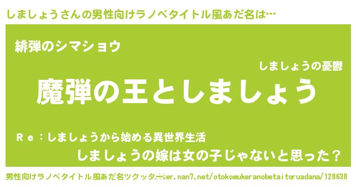 | 女子向けラノベタイトル風あだ名 | 『しましょうが死なない童話 林檎のしましょうの診療簿』 |