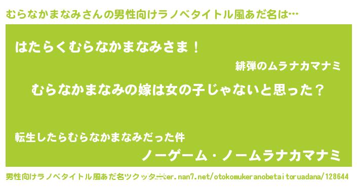 | 胡散臭い通販商品みたいなあだ名 | 『全米が絶賛したサプリメント…その名も「むらなかまなみ」』 |
