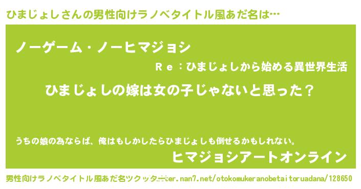 | 胡散臭い通販商品みたいなあだ名 | 『伝統あるサプリメント…その名も「ひまじょし」』 |