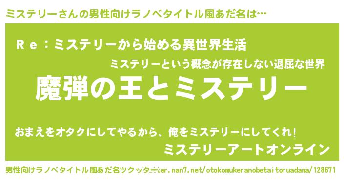| 胡散臭い通販商品みたいなあだ名 | 『ハリウッド女優が絶賛した世界で10本だけ現存している希少なブランデー…その名も「ミステリー」』 |
