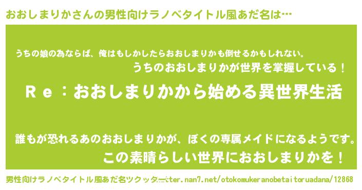 | 意味不明あだ名 | 『自称おおしまりか』 |