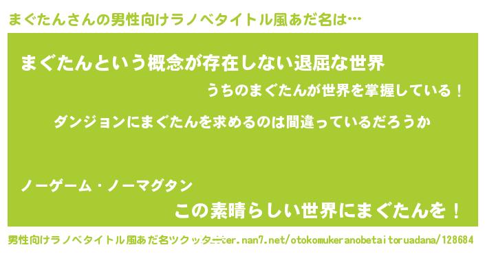 | 女子向けラノベタイトル風あだ名 | 『まぐたんは平凡を望む』 |