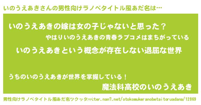 | 胡散臭い通販商品みたいなあだ名 | 『来世でも幸せになれる健康食品…その名も「いのうえあき」』 |