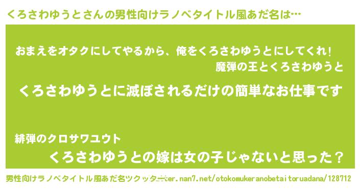 | 女子向けラノベタイトル風あだ名 | 『横柄くろさわゆうとと宰相陛下』 |