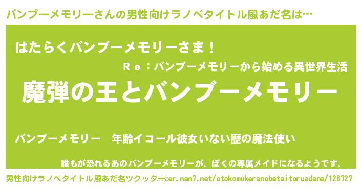 | ヒーロー風カッコイイあだ名 | 『仮面バンダー』『ネオバンブーメモリー』 |