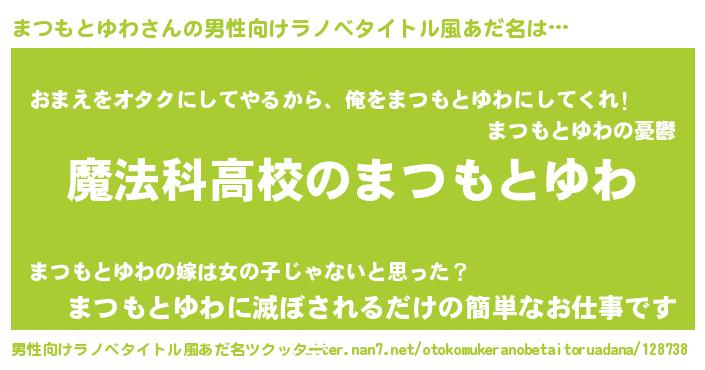 | 女子向けラノベタイトル風あだ名 | 『まつもとゆわなんてお断りですっ。』 |