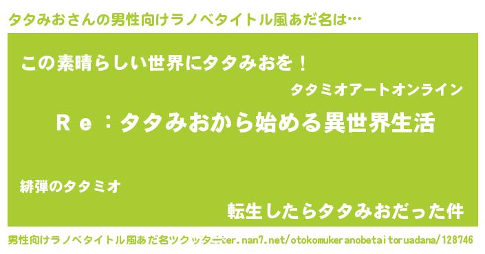 | 女子向けラノベタイトル風あだ名 | 『タタみおストレイドッグス』 |