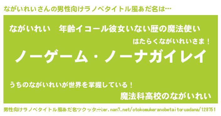 | 女子向けラノベタイトル風あだ名 | 『死神ながいれいの再婚』 |