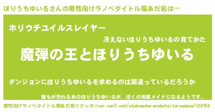 | ヘコむあだ名 | 『ほりうちゆいる(笑)』『ほりっ子』 |