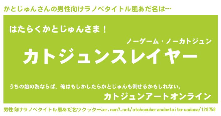 | 胡散臭い通販商品みたいなあだ名 | 『必ず成功する霊験あらたかなお札…その名も「かとじゅん」』 |
