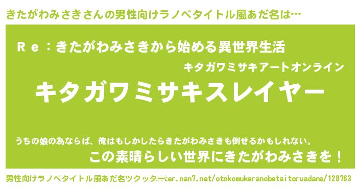 | 肩書あだ名 | 『きたがわみさき大将』 |