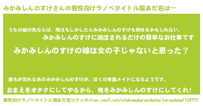 | 胡散臭い通販商品みたいなあだ名 | 『伝統あるサプリメント…その名も「みかみしんのすけ」』 |