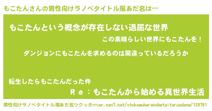 | 女子向けラノベタイトル風あだ名 | 『もこたんは平凡を望む』 |