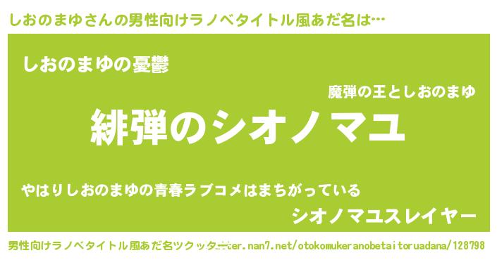| 胡散臭い通販商品みたいなあだ名 | 『必ず成功するブレスレット…その名も「しおのまゆ」』 |