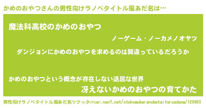 | 意味不明あだ名 | 『とにかく怪しいかめのおやつ』 |