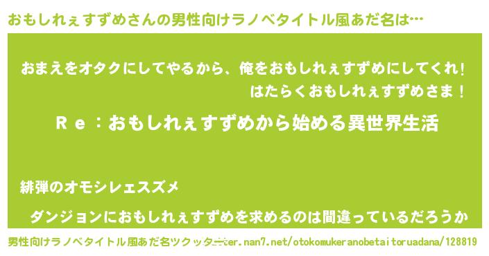| 女子向けラノベタイトル風あだ名 | 『闇のおもしれぇすずめ』 |