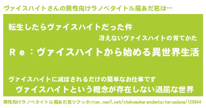 | ヘコむあだ名 | 『ヴァイスハイト(笑)』『ヴァっ子』 |